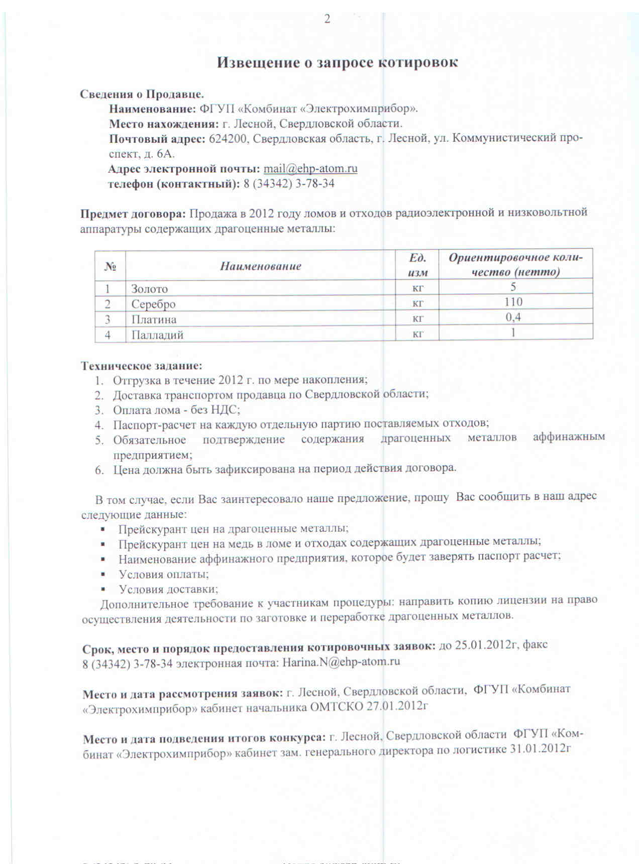 Продажа в 2012г. ломов и отходов радиоэлектронной и низковольтной аппаратуры содержащих драгоценные металлы.